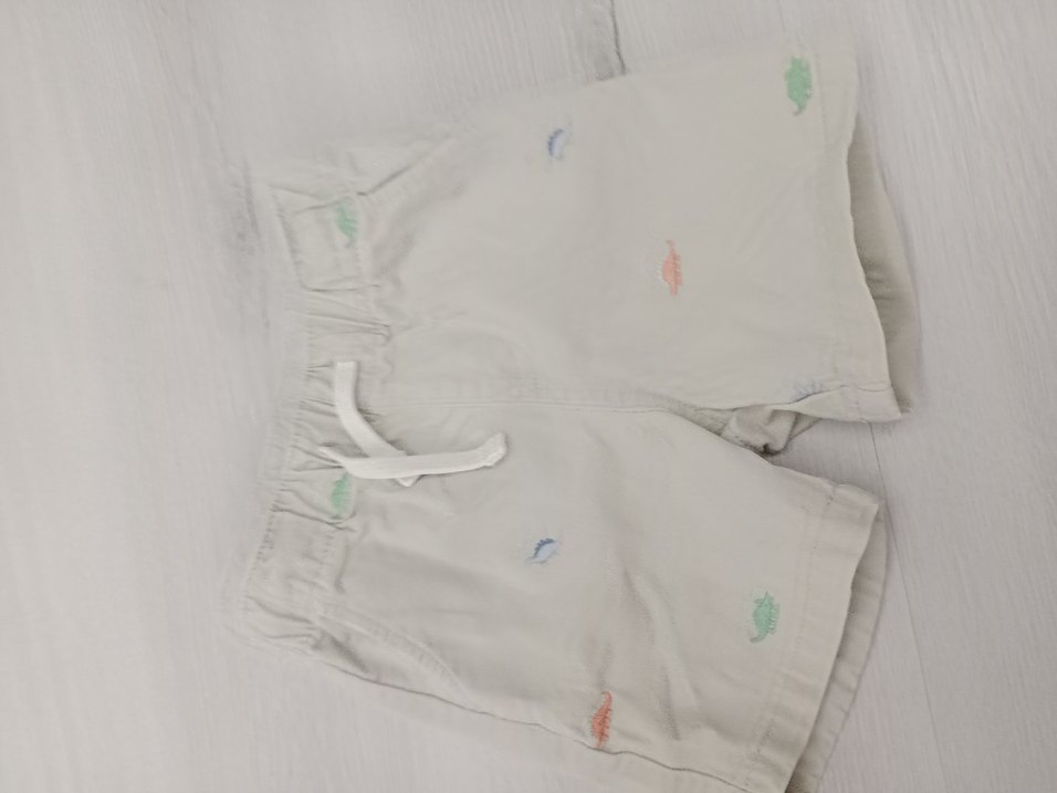 Renkli nakış detaylı, düğmeli, bol kesim beyaz keten erkek şort, trend sokak stili için uygundur.