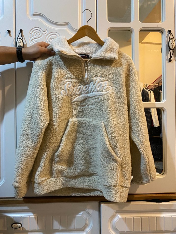 Yumuşak kumaştan, uzun kollu ve yuvarlak yakalı beyaz sweatshirt. Nakışlı detay ve ön fermuar içerir. Rahat kesim, günlük kullanım için uygundur.
