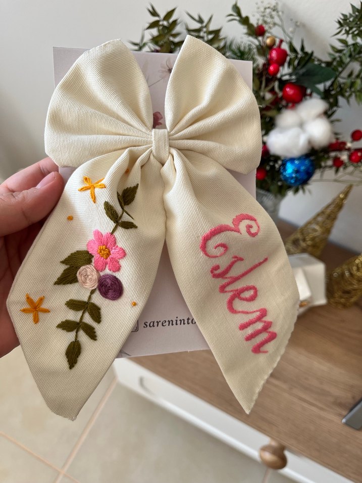 Nakışlı Beyaz Fiyonk Saç Tokası