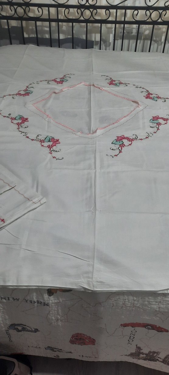 Pastel nakışlı çiçek desenlerine sahip beyaz gobekli nevresim takımı