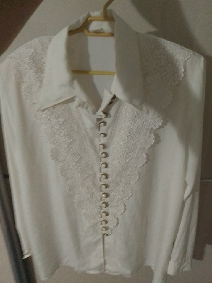 Uzun kollu, yakalı, nakışlı beyaz gömlek. Düğmeli önüyle vintage bir hava katar, rahat ve bol kesimdir. Ofis kullanıma uygundur.