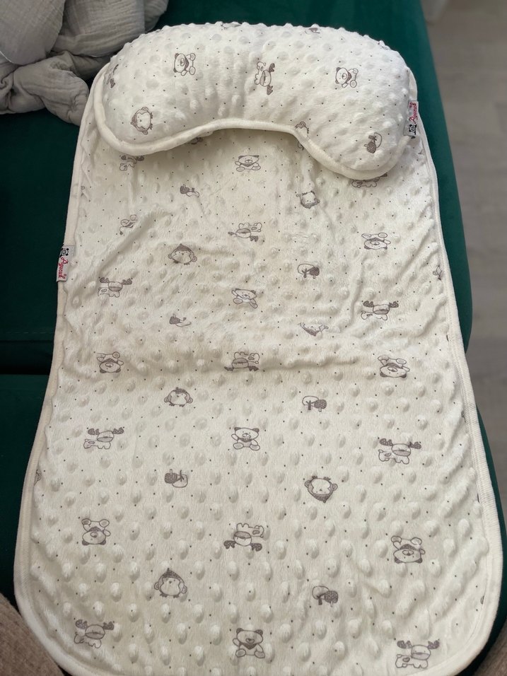 Yumuşak dokulu, nakışlı hayvan desenlerine sahip beyaz ve gri tonlarında bebek uyku seti. Küçük yastık ile konfor sağlar.
