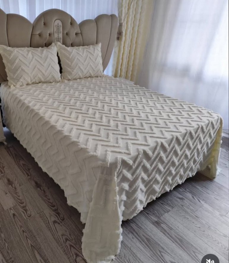 ürünü kendimiz yapıyoruz almak isterseniz bize bildirmeniz gerekiyor ve 3 gün içinde ürünü hazırlayıp 4. gün kargoya teslim edilir Gri nakışlı beyaz, kabartmalı zigzag desenli yatak örtüsü, yatak odanıza şık ve dokulu bir görünüm sunar. ️