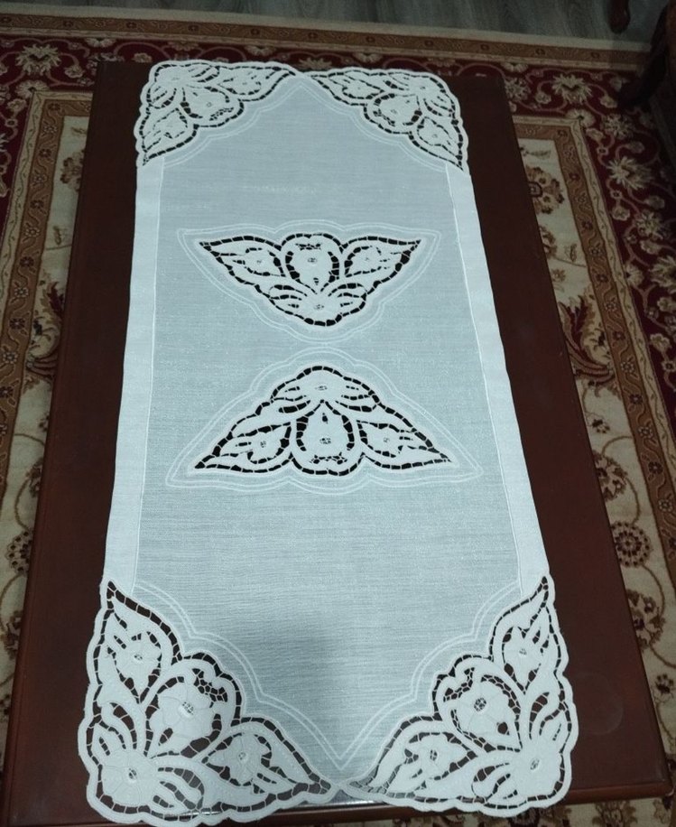 el emegi makina nakışı.simli ve kaliteli kumaş üzerine oturtulmu. runner .masanıza şık bir hava katar. sıfır ürün . #runner#masaörtüsü#sehba#çeyiz#nakış#nişan#bohça#