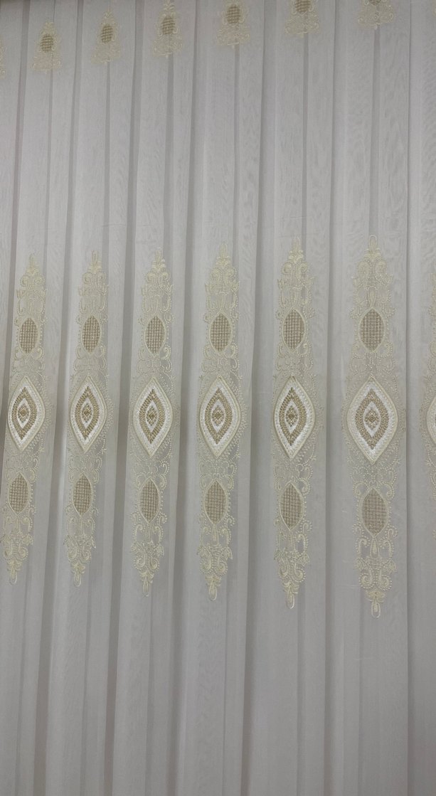 Nakışlı desene sahip, beyaz ve sarı tonlarında konvansiyonel perde, zarif bir görünüm sunar. Yenı sıfır aldımm makınada yıkanmadı hiç