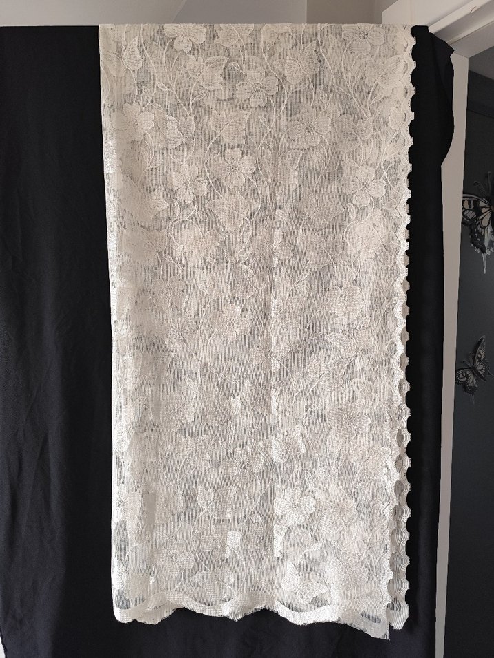 Nakışlı beyaz ve gri tül perde, geleneksel çiçek desenli ve dalgalı kenarlara sahiptir. Pencere dekorasyonunda zarif ve klasik bir görünüm sunar. En 2.20cm Boy 132cm tek kanatlı çatı katları için uygun ister yatak odası ister küçük oda için kullanılabilir.
