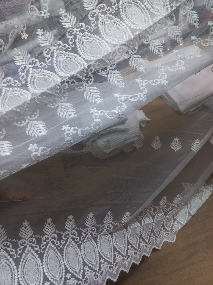 Nakışlı beyaz ve gri desenlere sahip konvansiyonel tarzda, şeffaf tül perde. Mekanınıza zarif bir dokunuş katar. 3 metre sık pile 2000 tl boyu siz ne kadar isterseniz