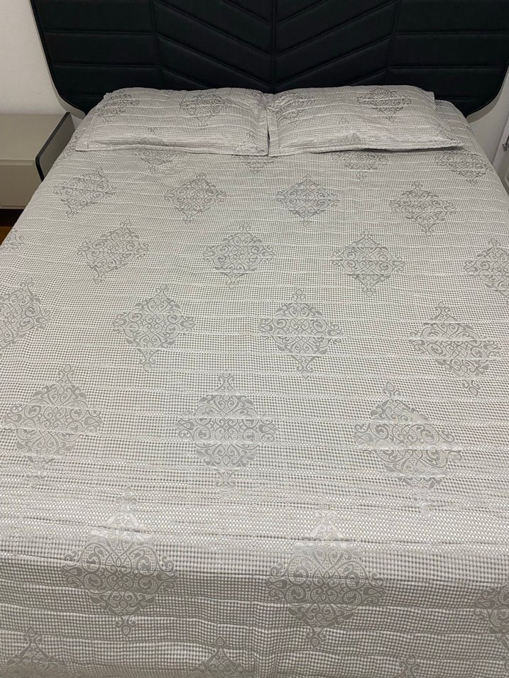 Nakışlı Beyaz Gri Yatak Örtüsü