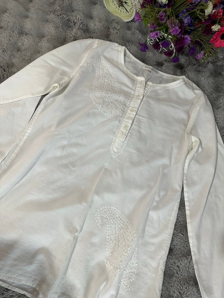 100/100 Pamuk kumaştan, uzun kollu, yuvarlak yaka ve düğmeli ön kısmı olan beyaz hamile tunik. Nakış detaylarıyla bohem tarzda, rahat ve midi boyda.