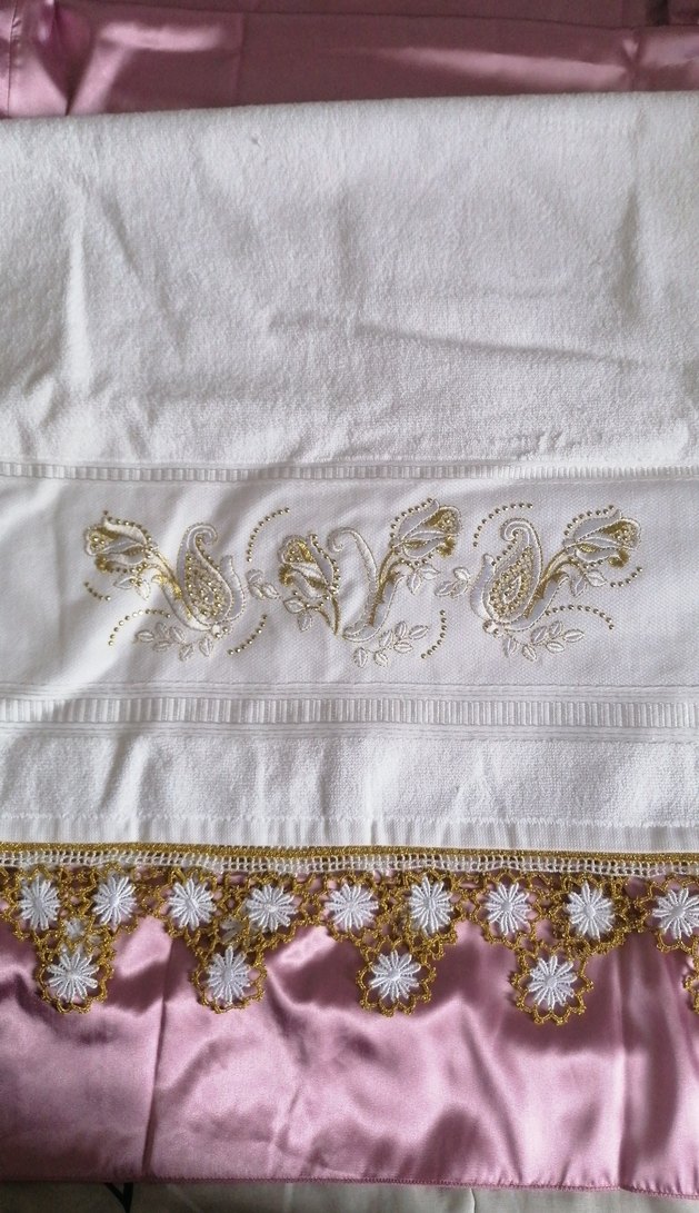 Bu beyaz havlu, zarif nakış desenleri ve parlak süslemeleriyle klasik bir stil sunar.