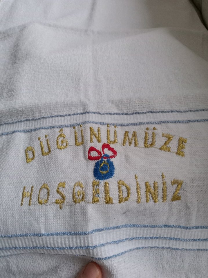 Nakışlı Beyaz Havlu - Düğün Temalı