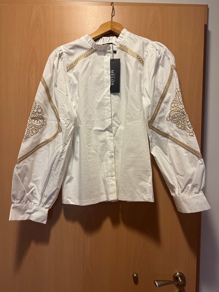 nakışlı uzun kollu, düğmeli ve yakalı beyaz gömlek. Salaş kesimiyle ofis için uygun, bohem tarzda bir parça. Etiketli