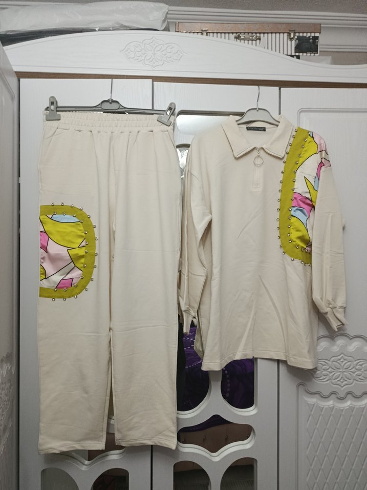Nakışlı Beyaz Kadın Mini Eşofman Takımı