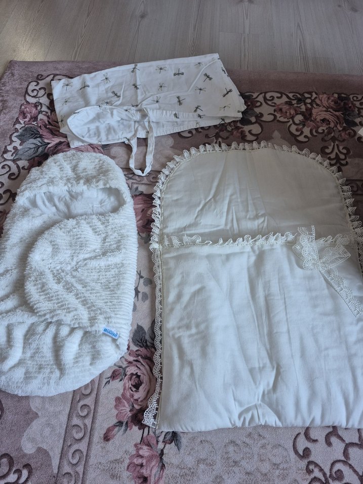 Nakışlı detaylara sahip beyaz keten bebek uyku seti, rahat bir örtü ve yumuşak yastıktan oluşur. Dantel süslemeleri ve yumuşak dokusuyla konfor sağlar. ️ Ayrı veya toplu almak isterseniz yardımcı olurum
