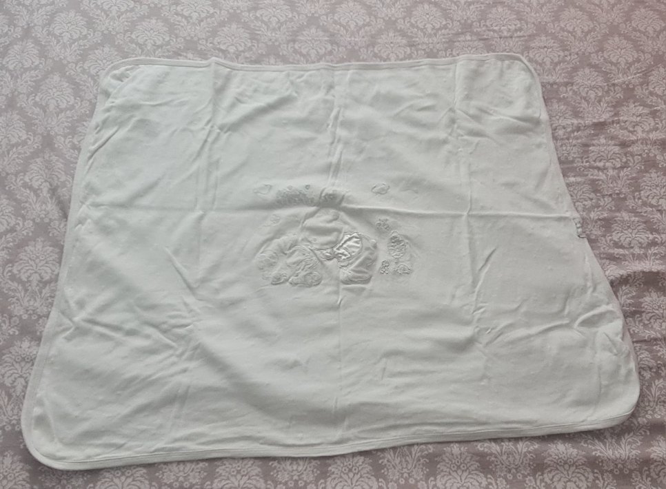 Nakışlı desenlere sahip beyaz keten çocuk battaniyesi, yumuşak ve nefes alabilen dokusuyla pastel tonlarda sunulmaktadır. #bebekbattaniyesi 72*86 sorunu yok