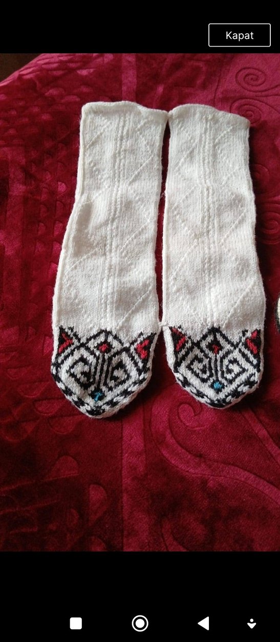 Yumuşak örme kumaştan, beyaz renkli el emeği çorabı, burun kısmında renkli nakışlı desenlere sahip. 30 YILLIK BAZILARI 35 YILLIK COK SICAK VE YILLARCA erkek ve kadın için ayrı çocuk için de ayrı SOKULMİYOR ŞİMDİDEN HAYIRLI OLSUN ✨