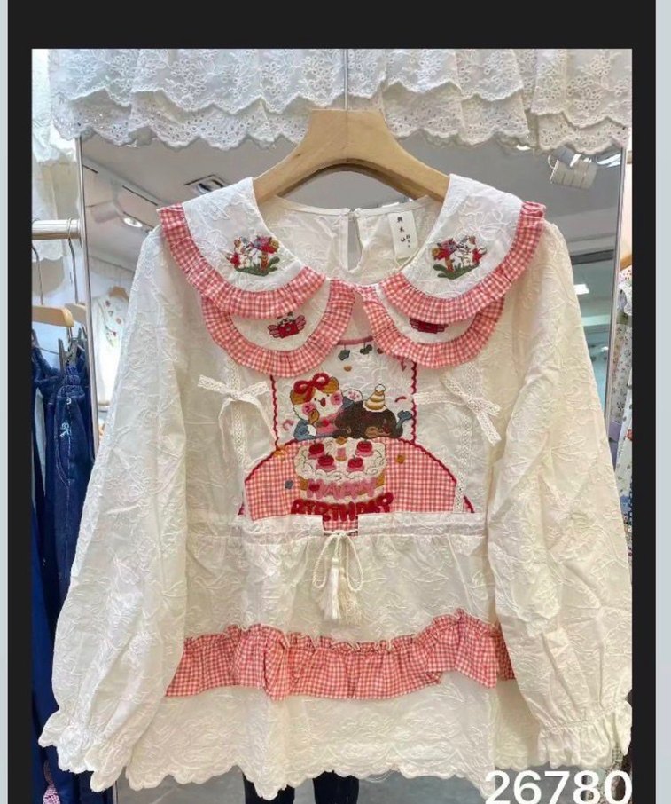 Nakışlı detaylı, uzun kollu, yuvarlak yakalı beyaz kız çocuk bluzu. Bol kesim ve fırfır detaylarıyla bohem tarzda tasarlanmıştır.