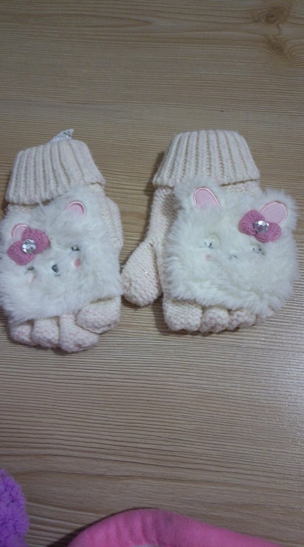 Yumuşak kumaşlı, nakışlı ve örgü beyaz kız çocuk eldiveni, günlük kullanıma uygundur.