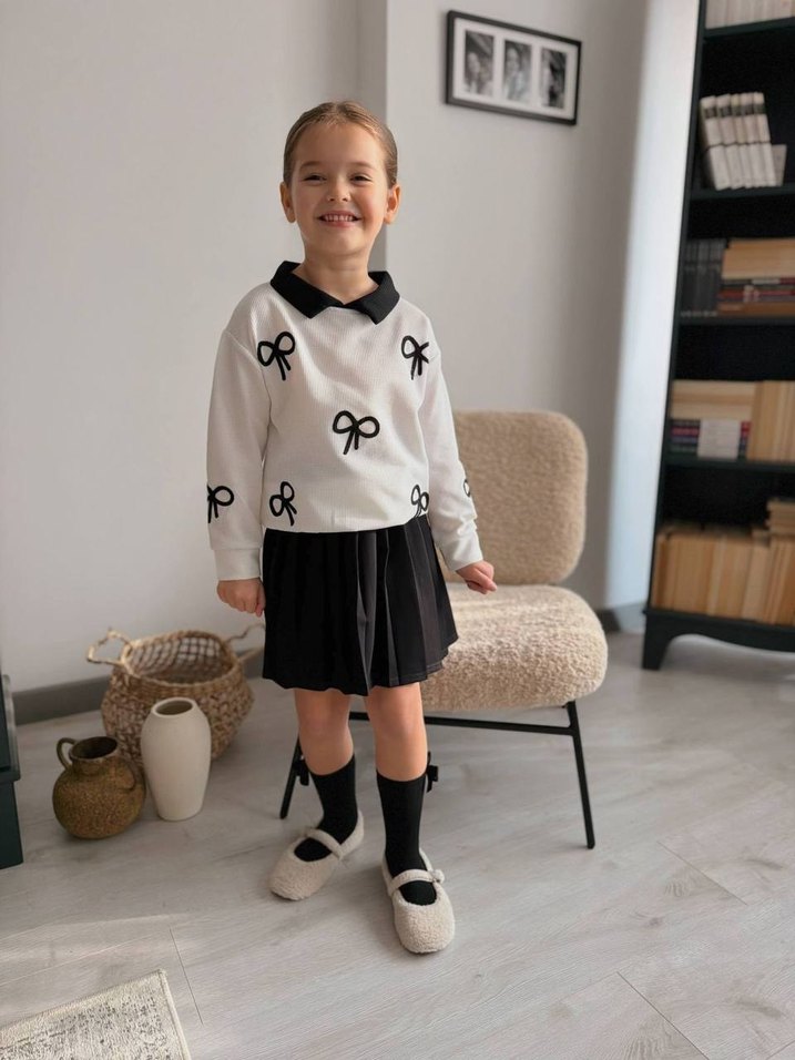 Beyaz, yumuşak kumaştan, nakışlı fiyonk desenli, bol kesim kız eteği, trend ve rahat bir tarz sunar. *2026 YENİ SEZON YENİ MODEL* ✏️KURDELE NAKIŞLI YAKALI PİLİSELİ ETEK 2 Lİ TAKIM *high quality* *3-4/4-5/5-6/7-8/9-10/11-12 Yaş* *Üst Likralı Waffle Kumaş* *Etek Piliseli 2 İplik Kumaş* *Bel Kemerli* *Full Nakış* *Kalıp Kalite Garantili Ürün* ✅