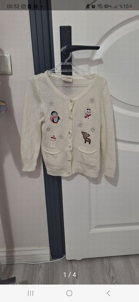 Uzun kollu, beyaz renkli, nakış detaylı ve fitted kesim kız çocuk hırkası, sıcak ve rahat bir görünüm sunar. ❄️