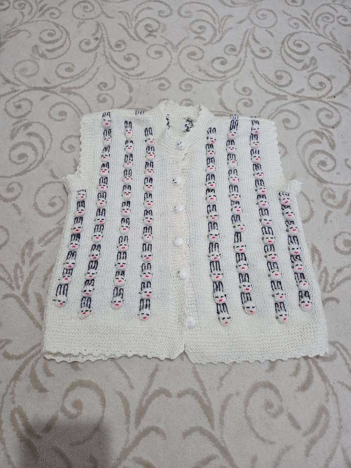 Nakışlı Beyaz Kız Çocuk Kolsuz Hırka,örgü hırka