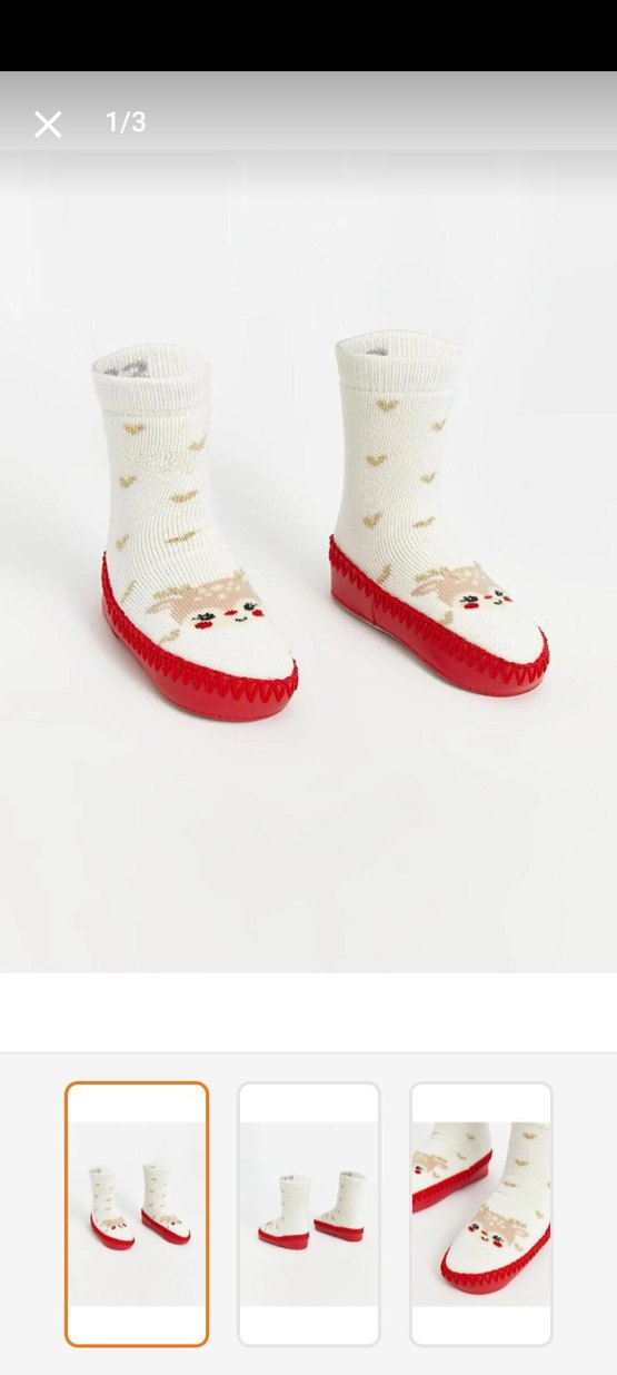 Nakışlı desenlere sahip beyaz kız çocuk terliği, yumuşak ve sıcak dokusu ile kırmızı tabana sahiptir.