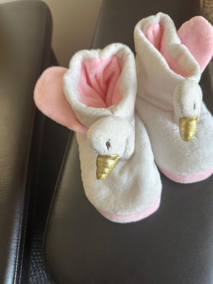 Nakışlı kuğu detaylı, peluş dokulu beyaz kız çocuk terlikleri, pastel tonlarda ve sokak stiline uygun sıcak tutar.