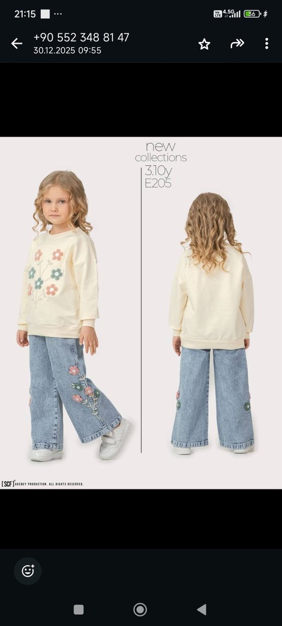 Nakışlı Beyaz Kız Denim Sweat pantln takımı
