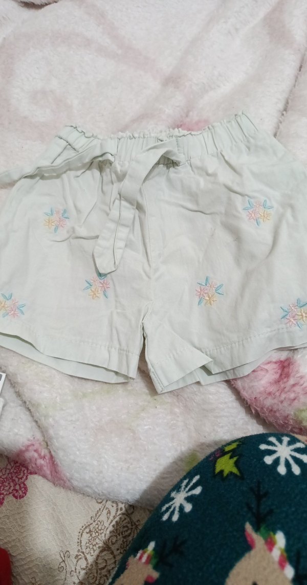 Pamuklu, bol kesim beyaz şort, pastel renkli nakış detayları ve düğmeli bel ile trendy sokak stili için uygun.