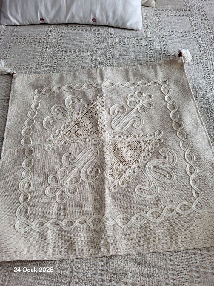 Nakışlı Beyaz krem yastık kılifi BULDAN İŞİ