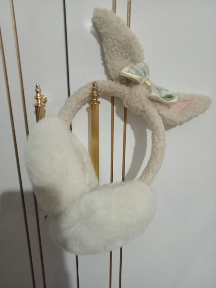 Yumuşak kürk kaplı beyaz kulaklık, nakışlı detaylar ve fiyonk süslemeli kulaklar ile bohem tarzda.
