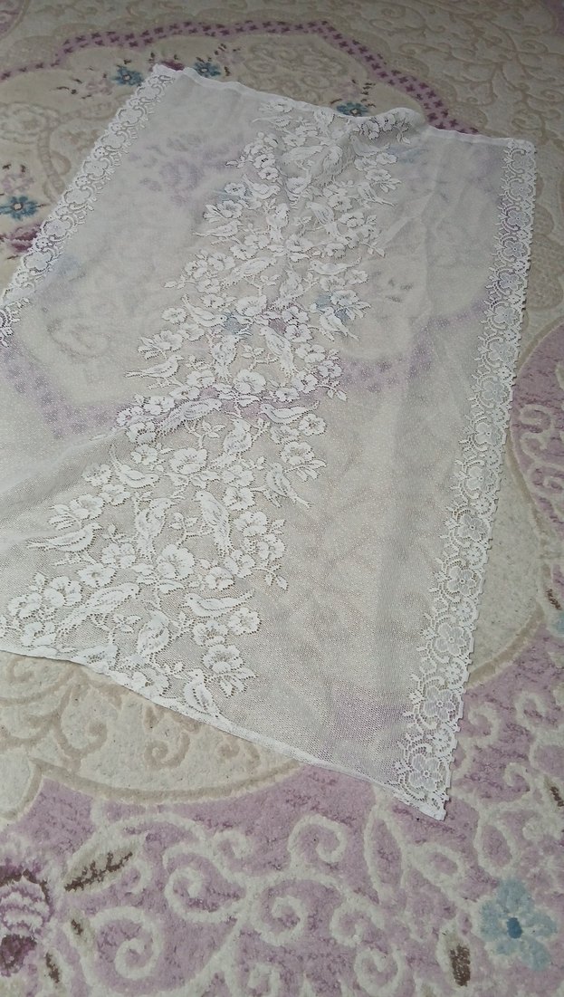Beyaz renklerde, nakışlı çiçek desenleriyle süslenmiş geleneksel tarzda masa örtüsü. ölçüsü mevcut Geri iade yok Sayfama beklerim