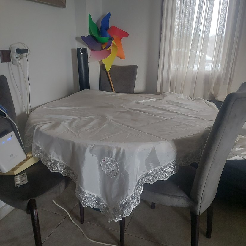 Nakışlı ve dantel kenarlı beyaz masa örtüsü, klasik tarzda. Masanıza hafif ve şık bir dokunuş katar. ️
