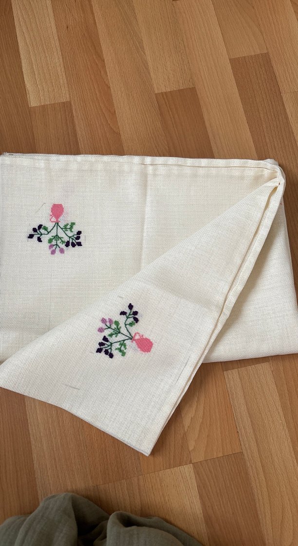 Etuval işlemelik keten kumaş. İşleme motifleri yapılmış ama devam edilmemiş bazı yerlerinde motif var onun dışında tertemiz
