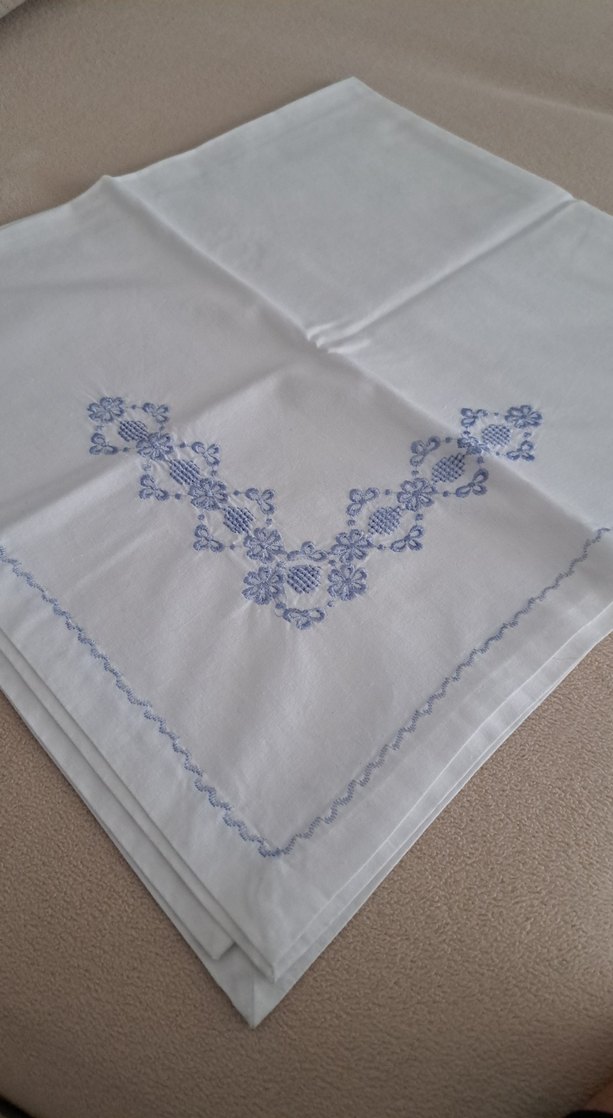 klasik beyaz mavi işlemeli Bohça