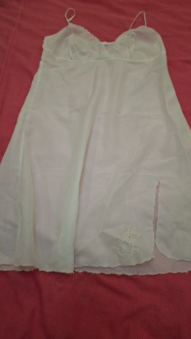 Nakışlı detaylara sahip, beyaz renkli, kolsuz midi uzunlukta, bol kesim, bohem vintage tarzda kadın gecelik. Hafif ve rahat bir kullanım sunar. göyüs ölçü 45 cm ufak leke var sandık ürünü sıfır ürün