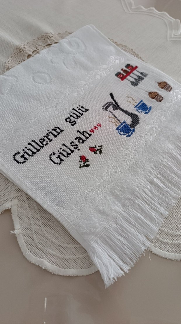 İsminize özel işlenir 30 50 ölçülerinde beyaz saçaklı havlu