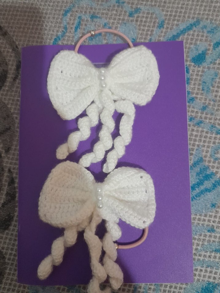 Nakışlı Beyaz ÖRGÜ Fiyonk Saç Tokası