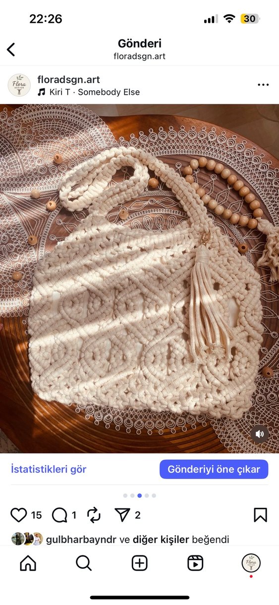 Nakışlı desenler ve dantel detaylar içeren beyaz örgü kadın çantası, bohem tarzını yansıtır. Günlük kullanım için uygundur ve püskül süsü bulunur.