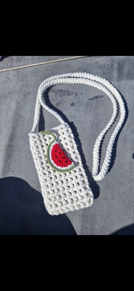 Beyaz örgü çapraz çanta, renkli nakış detay ve örgülü askıya sahip, minimalist ve bohem tarzı yansıtıyor.