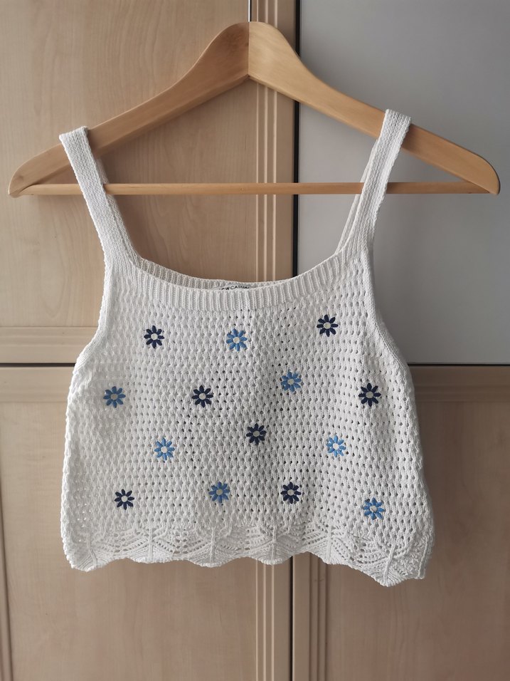 Lcw XS 34 beden Nakışlı çiçek desenli beyaz örgü, askılı ve bol kesim mini kadın atlet. Günlük kullanıma uygun