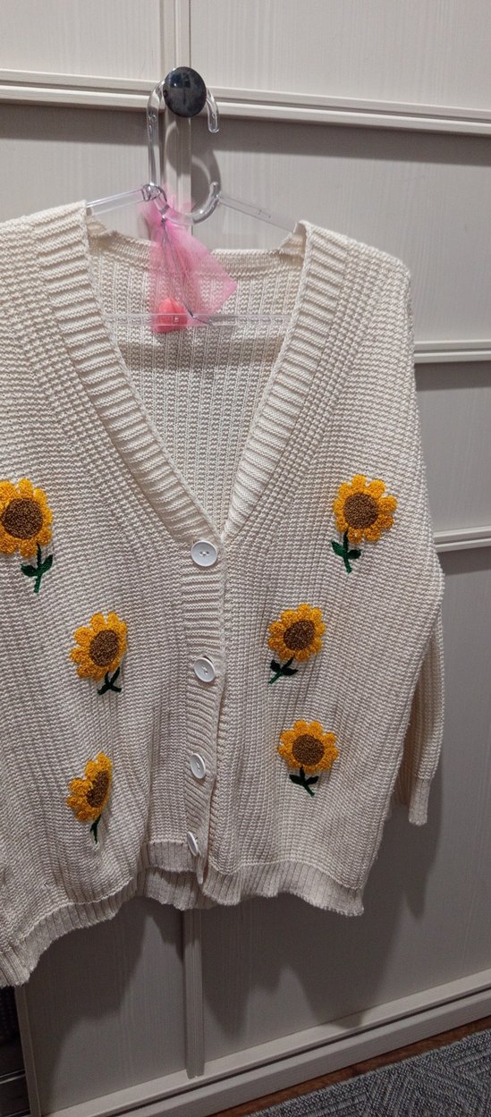 Nakışlı Beyaz Örgü Kadın Hırka