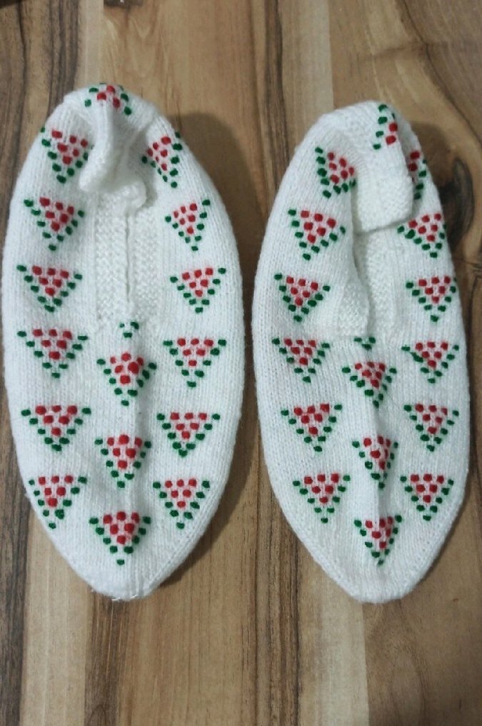 Renkli karpuz nakış desenli el örgüsü çeyizlik patik