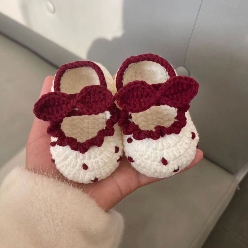 Nakışlı Beyaz Örgü Kız Bebek Patik