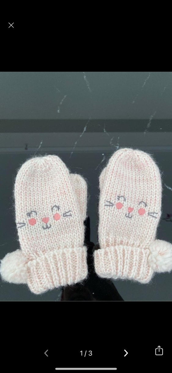 Nakışlı sevimli yüz detayları ve yumuşak ponponları olan beyaz örgü kız eldivenleri, trend sokak stiline uygun.
