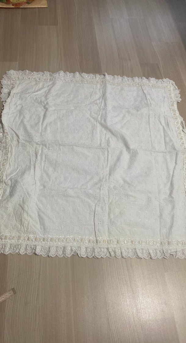 Nakışlı desenlere ve dantel kenarlara sahip örtüsü, klasik tarzda. Hafif ve zarif bir tasarım. ️75-75 cm