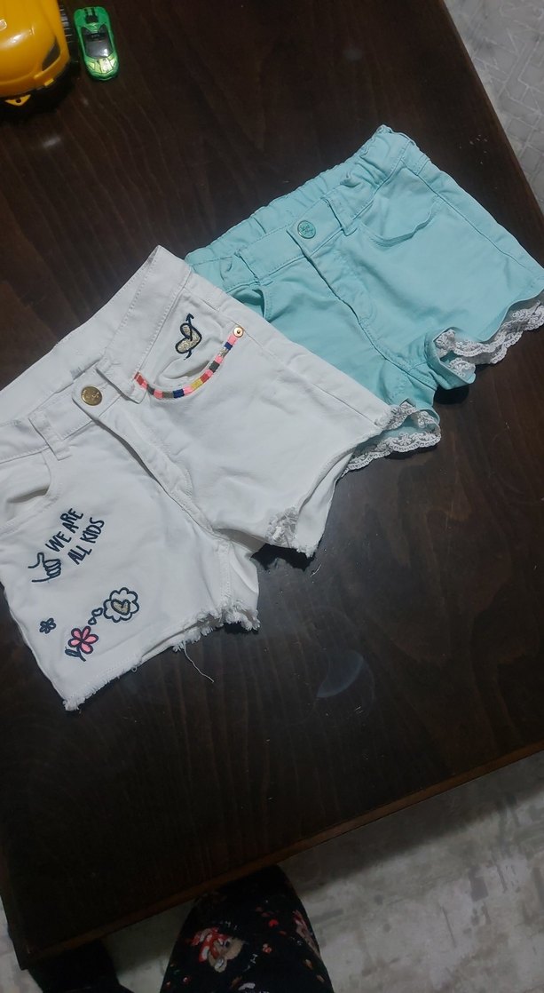Nakışlı Beyaz Pamuklu Düğmeli Kız Şortu