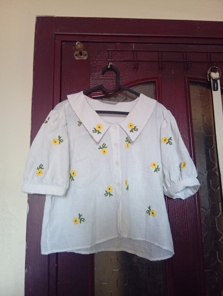 Nakışlı Beyaz Pamuklu Gömlek crop