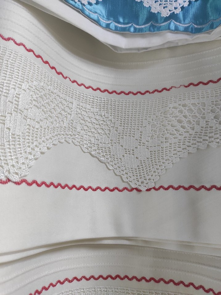 Parlak beyaz renkte, kırmızı dikiş detaylı ve ince nakış desenli yastık kılıfı. ️ 2 çifttir bir çift fiyatıdır