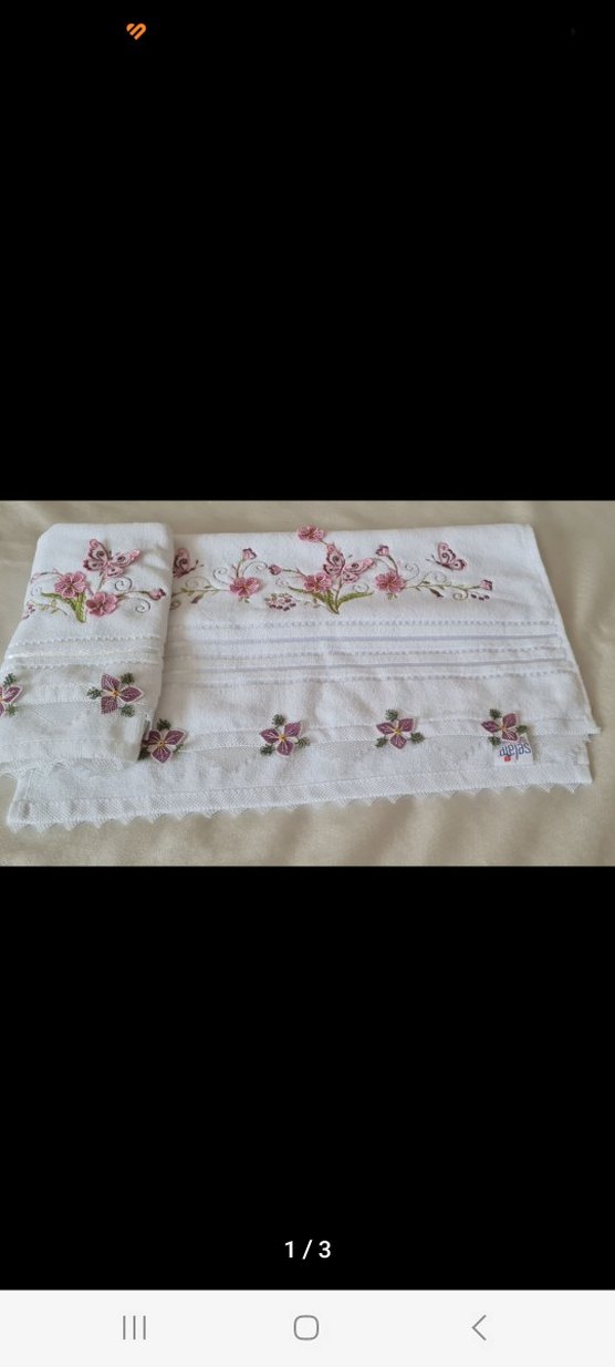 Analı kızlı iğne oyalı takım...Bu beyaz havlu seti, pastel tonlarda çiçek ve kelebek nakışlarıyla geleneksel tarzda tasarlanmıştır. Yumuşak ve şık bir dokunuş sunar.